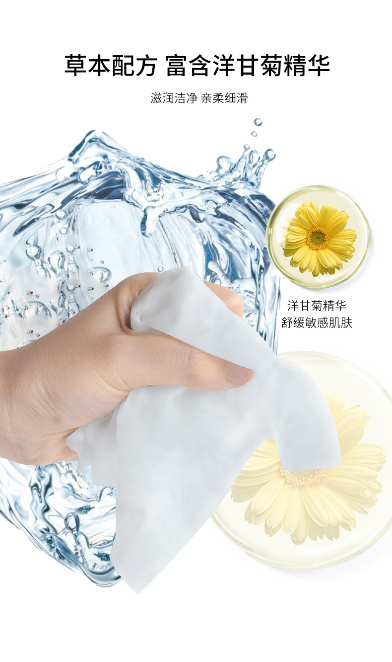 主要成分:可冲散木浆布、EDI纯水、洋甘菊提取液