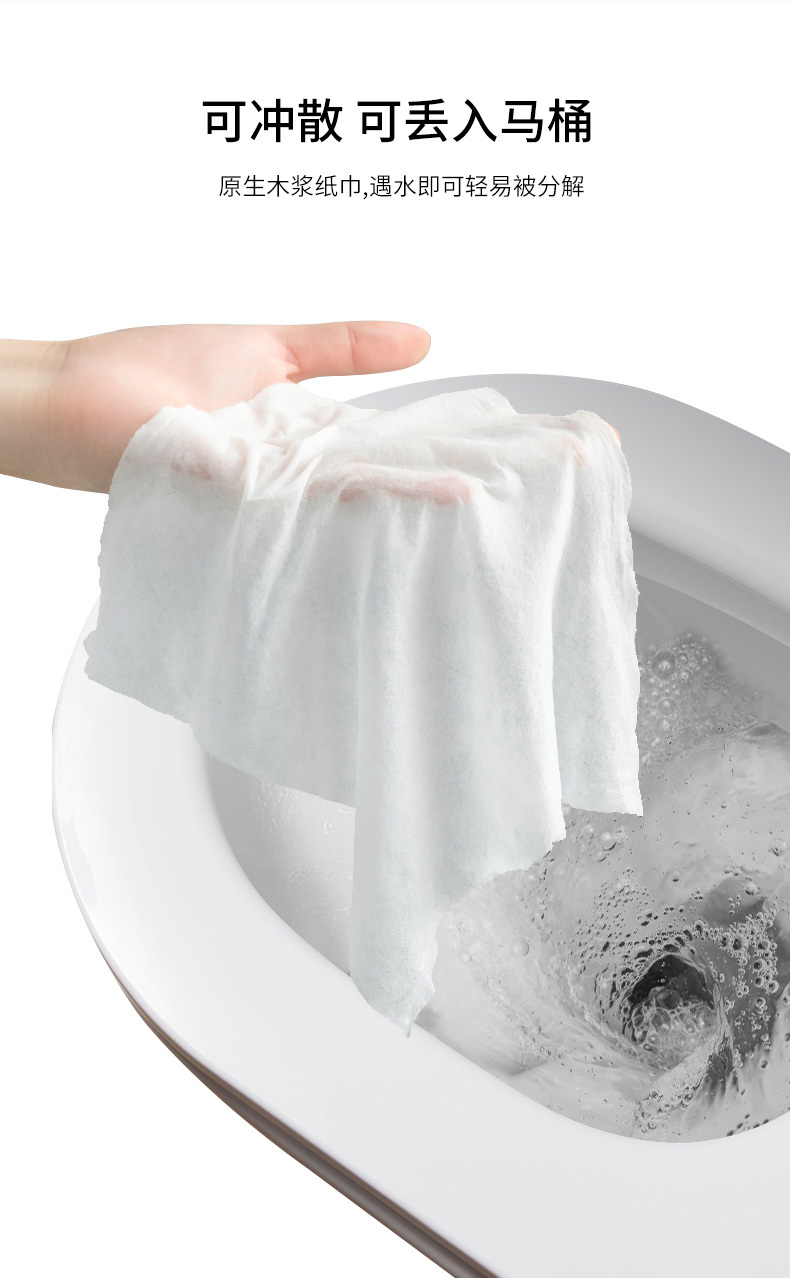 产品特点:全新如厕体验,用后干净如水洗,擦拭不脏手。EDI纯水,婴儿可以放心使用,加厚可冲散木浆布,质地柔软,适用舒适。