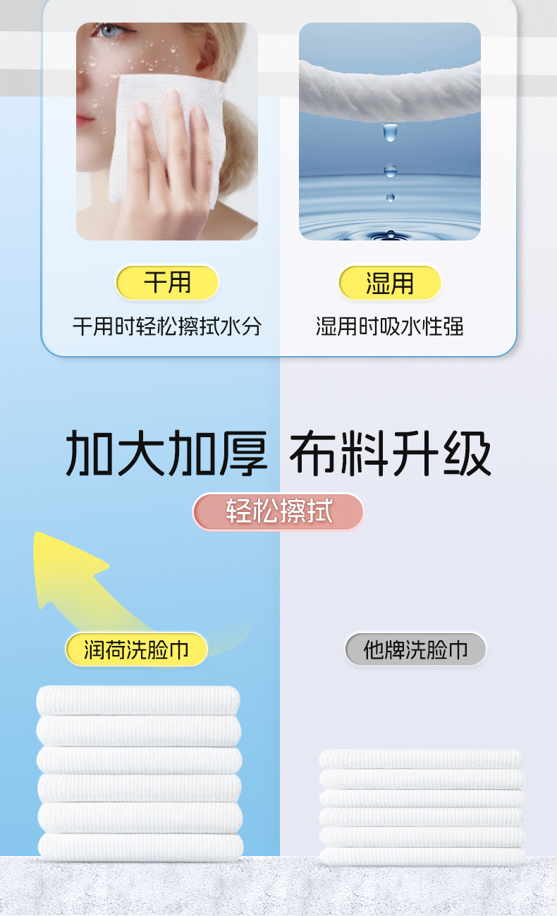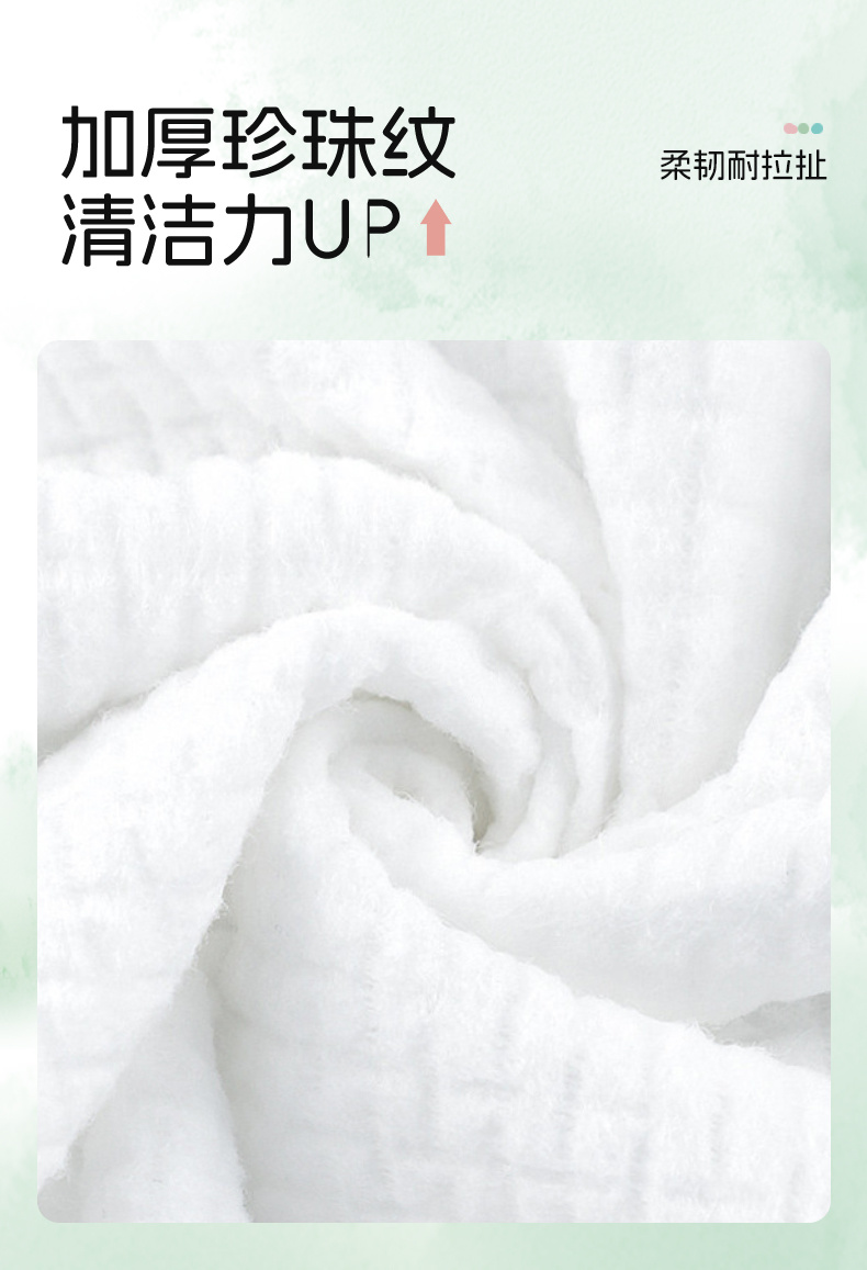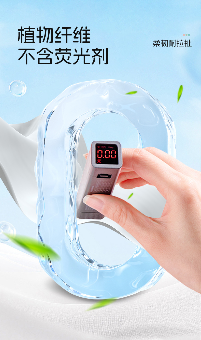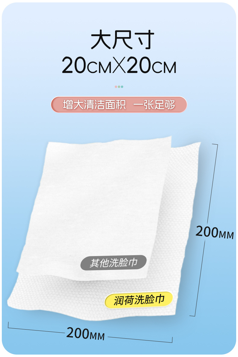 产品特点:优质水刺无纺布,柔韧细腻;不易破不易掉絮;干湿两用,适用多种场景;不含可迁移性荧光增白剂。