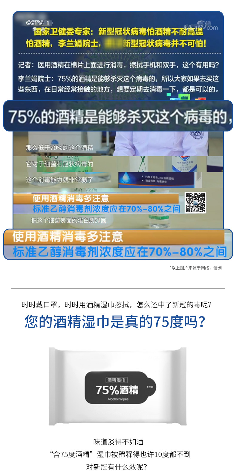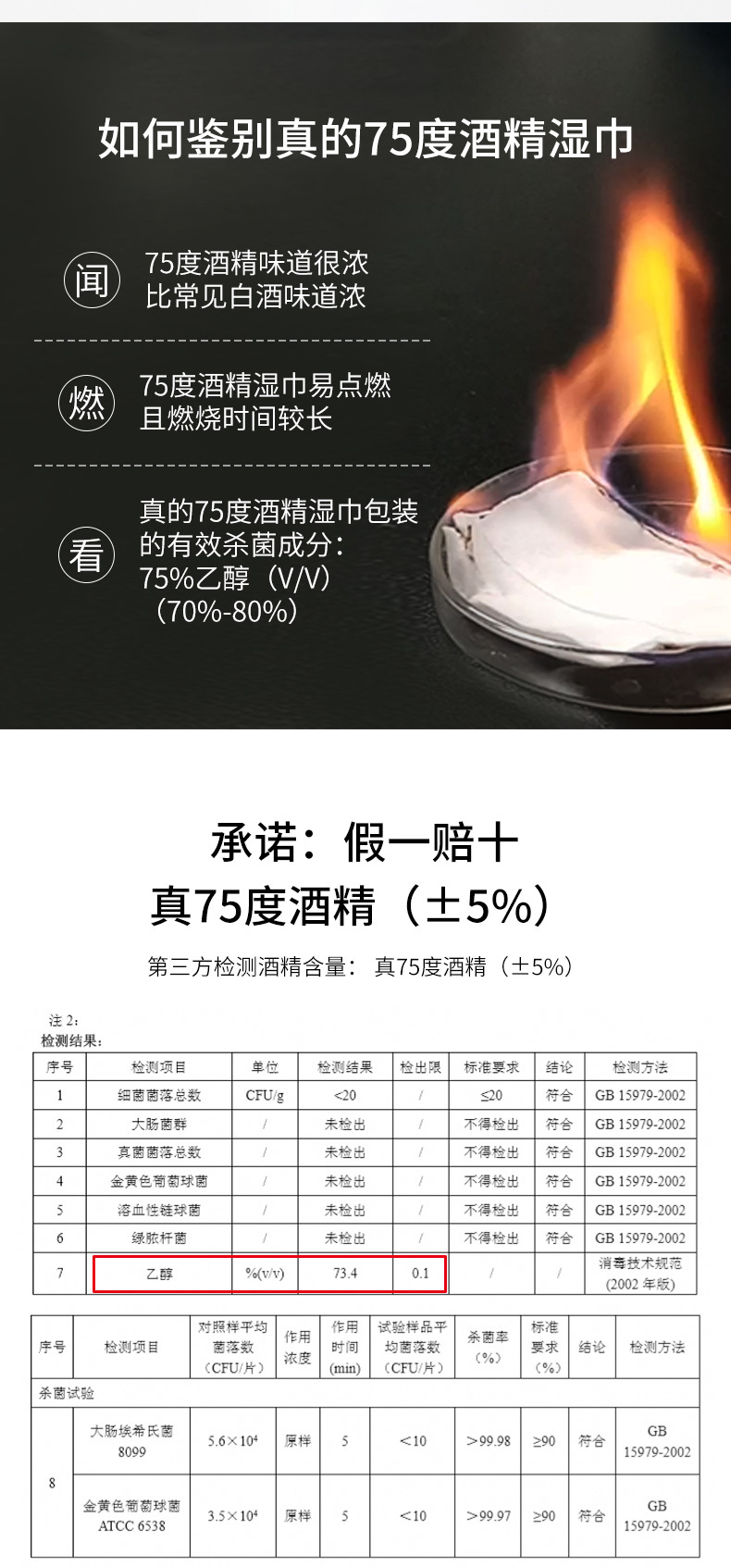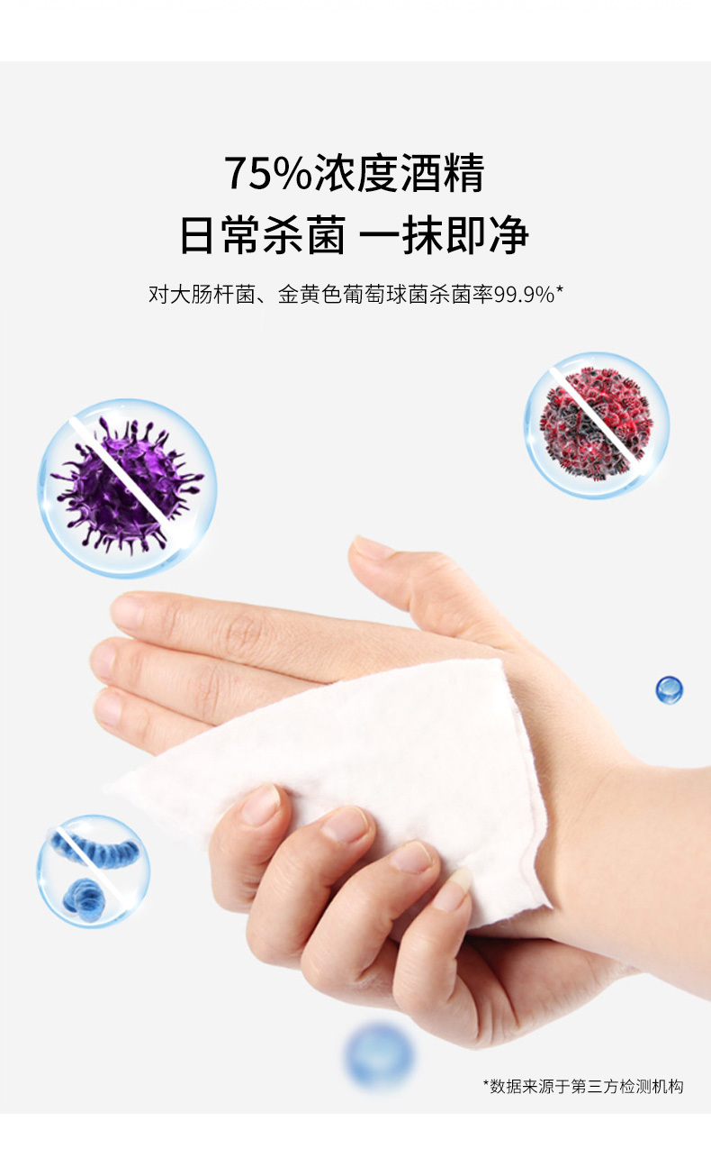 产品特点:对大肠杆菌、金黄色葡萄球菌有灭杀作用。真75%酒精湿巾!工厂实测,数据真实可靠!镀铝包装防挥发。