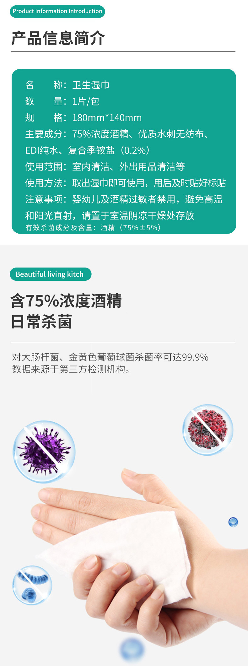 产品特点:对大肠杆菌、金黄色葡萄球菌有灭杀作用。真75%酒精湿巾!工厂实测,数据真实可靠!镀铝包装防挥发。