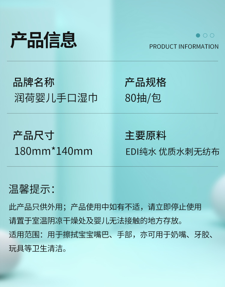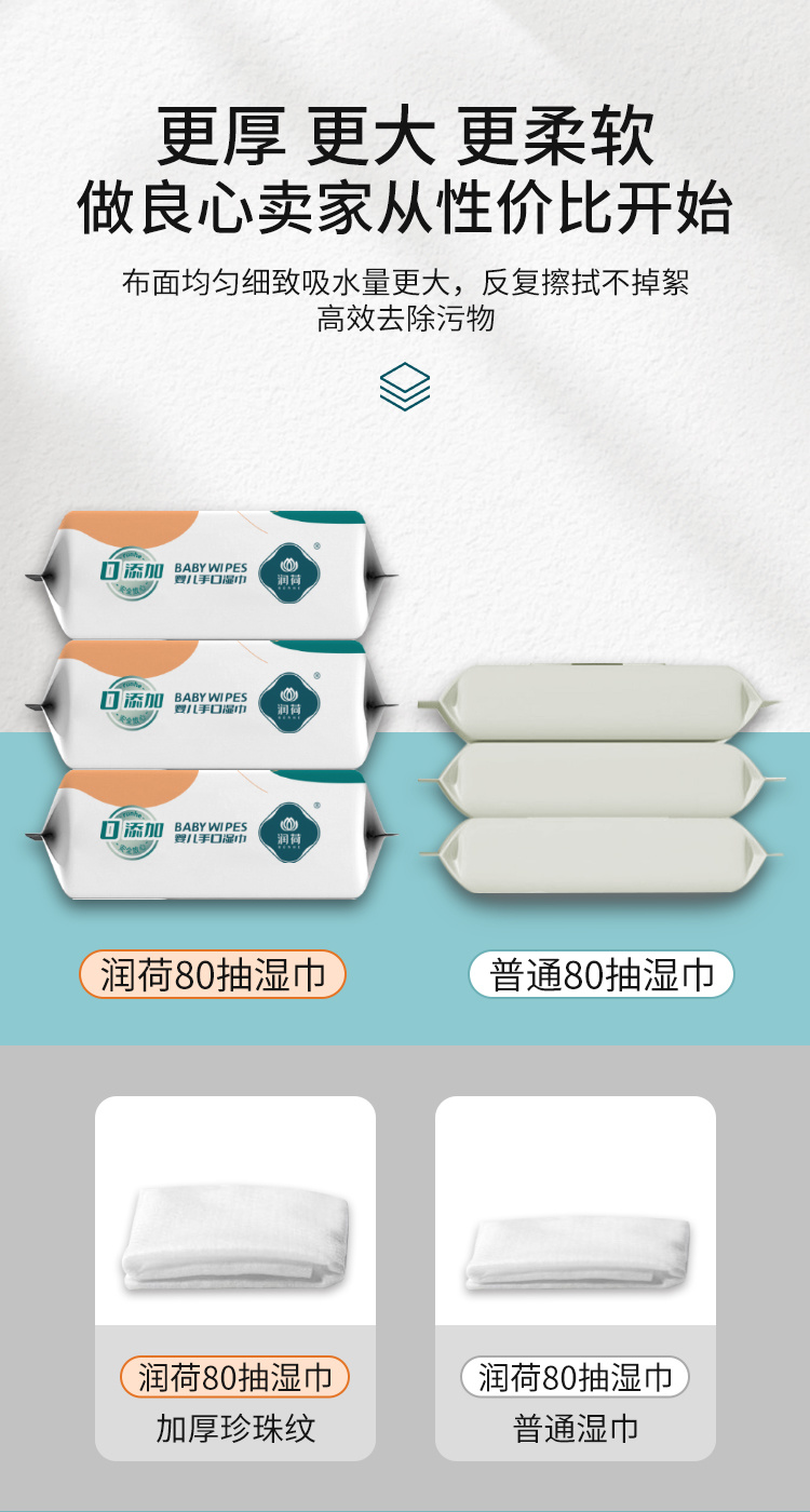 产品名称:润荷婴儿柔湿巾升级款0添加